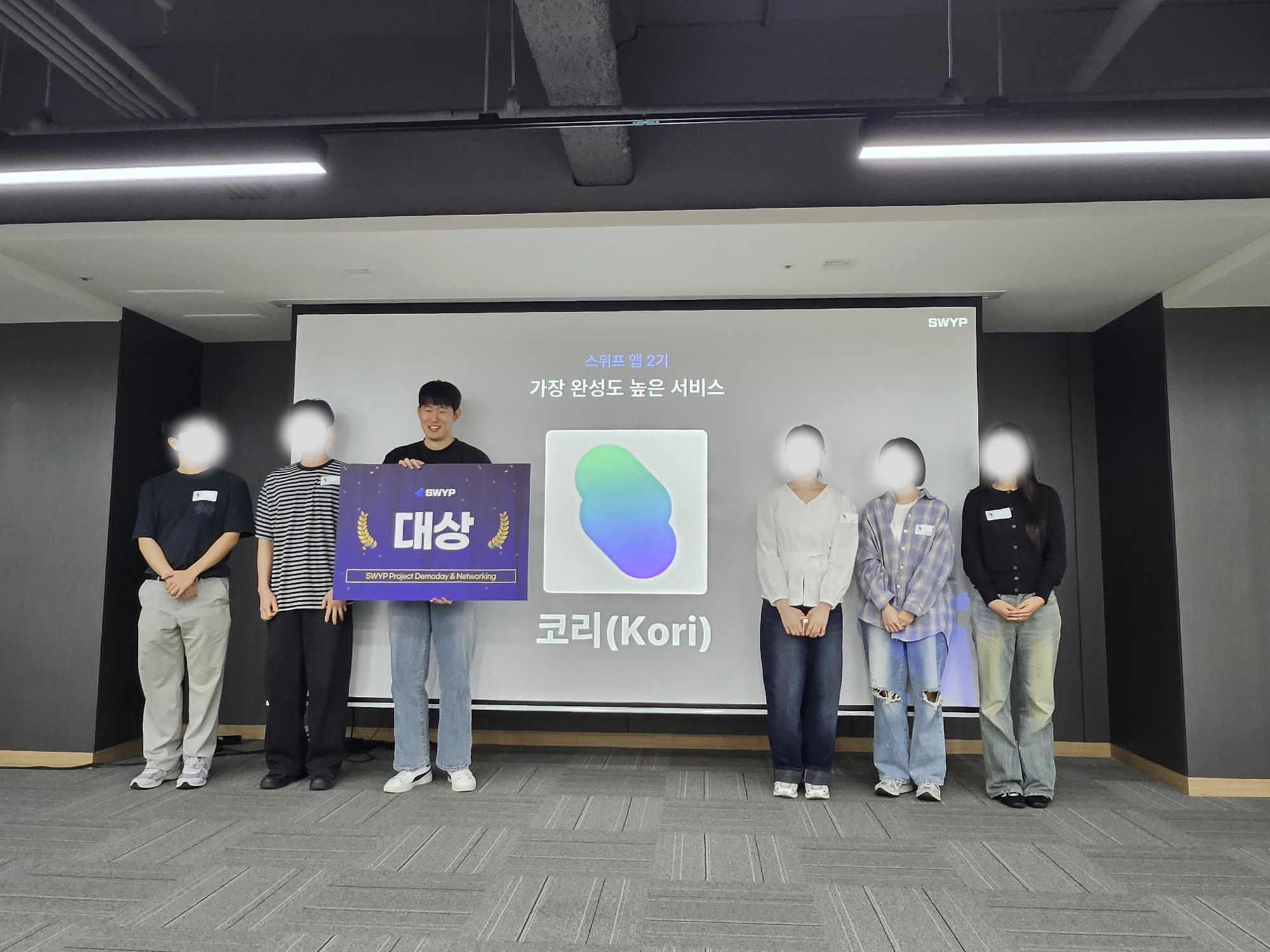 A. 안녕하세요, 저희는 이번에 “Kori” 앱을 개발하여 스위프 앱 2기 대상을 수상한 팀입니다.