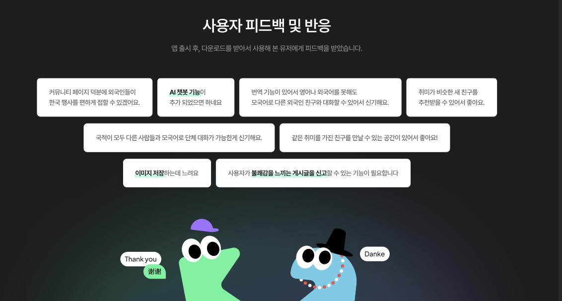 사용자 반응도 긍정적이었습니다. 특히 실시간 번역 채팅 기능에 대해 “신기하고 유용하다”는 반응이 많았고, 다크 모드 UI 역시 “깔끔하고 세련됐다”는 좋은 평가를 받았습니다.